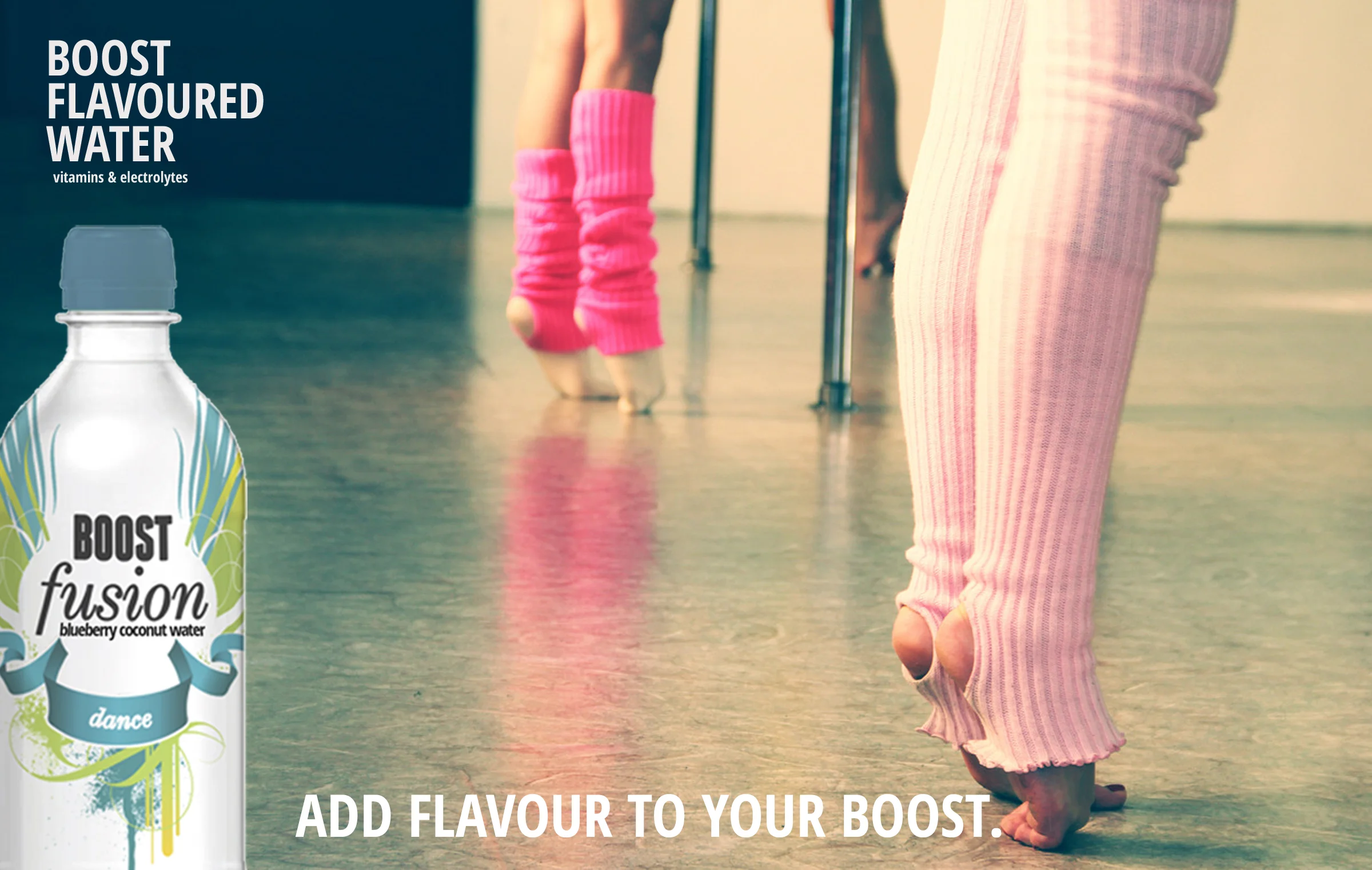 Boost Energy is launching a new flavoured water drink called Boost Fusion. Boost Fusion is about combining music and flavours together to create this new and unique flavored water.Each bottle is labeled with an unique music genre; this genre describes the flavour of the water. Boost Fusion connects music and flavours with everyday activities. For example, pick up a Boost Fusion Dance, to help benefit your work out.